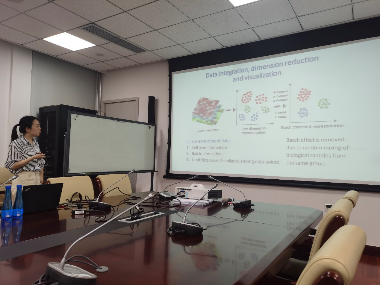 许欣怡老师从介绍生物信息统计的研究主题与研究问题开始,分享了统计学在生物信息领域的应用。随后就相关研究内容,介绍了一种原创的数据降维方法,structure-preserved dimension reduction (SPDR) method,并分享了具体的研究思路与原理。该报告最后探讨了统计学与生物信息领域可深度结合的研究方向,引发了团队成员的热烈讨论。团队成员一致认为,该数据降维方法也为高频金融复杂数据降维提供了思路,同时也为创新团队的研究打开了新的思路。