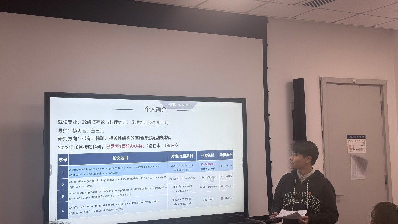 2024级数理统计博士孟康则分享了他在《Knowledge-Based Systems》期刊上发表的论文“Transfer Learning for High-dimensional Linear Regression via the Elastic Net”的写作心得。他从研究背景、动机、方法、理论性质和数值模拟五个方面进行了详细介绍,强调研究的必要性、方法的直观性和理论基础的严谨性,并通过数值模拟验证研究结果的有效性。