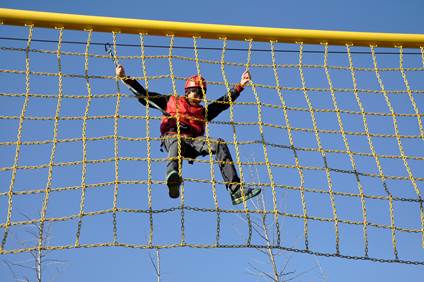 整个拓展过程充满了智慧和挑战,对团队的适应能力、抗压能力、协作能力、决策能力、执行能力等都进行了考验与锻炼,但所有队员都能够勇于承担、突破自我、相互鼓励、团结协作,最终克服困难并圆满完成了各项任务。上午的活动均为中空拓展。第一个项目为侧爬网,每一位队员要从距地面5米的绳网的一端爬到另一端,总长20米左右;第二个项目为空中抓杠,项目要求每一位学员独自爬上一个5米高的高台,然后奋力越出,去抓住横在空中的单杠;第三个项目为空中断桥,每一位队员要从立柱爬上距地面5米,宽1.2米的断桥,并从桥的一端跳到另一端。这些拓展项目增强了队员们在面对挑战时应具备的生存能力和适应能力,队友之间的相互鼓励和嘹亮的加油助威使队员们克服恐惧,接受挑战。从而达到提升综合素质和无限潜能、实现自我突破和自我超越的目的。
