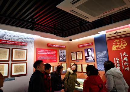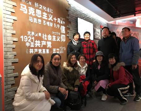 老师们参观了经过复原的阅览室、书库、教室,以及新潮杂志社、员工大教室和李大钊等先烈工作过的办公室场所,通过文字、图片介绍和当时的物品陈列,细致生动地了解了陈独秀、蔡元培、毛泽东、李大钊等先驱在红楼工作时的情景,感受到了新文化运动和五四时期师生浓厚的求学和救国热情。走过一个个房间,犹如置身于百年前的北大,置身于五四运动先驱们学习、生活和求索的环境中。重温那段风云激荡的历史,缅怀革命先烈的丰功伟绩,大家深刻地感受了先烈们在五四运动、新文化运动时期动荡坎坷而满怀激情的峥嵘岁月,激发了大家的爱国热情,更加深刻认识到身为高校教育工作者和当代共产党人的历史使命感与责任感。
