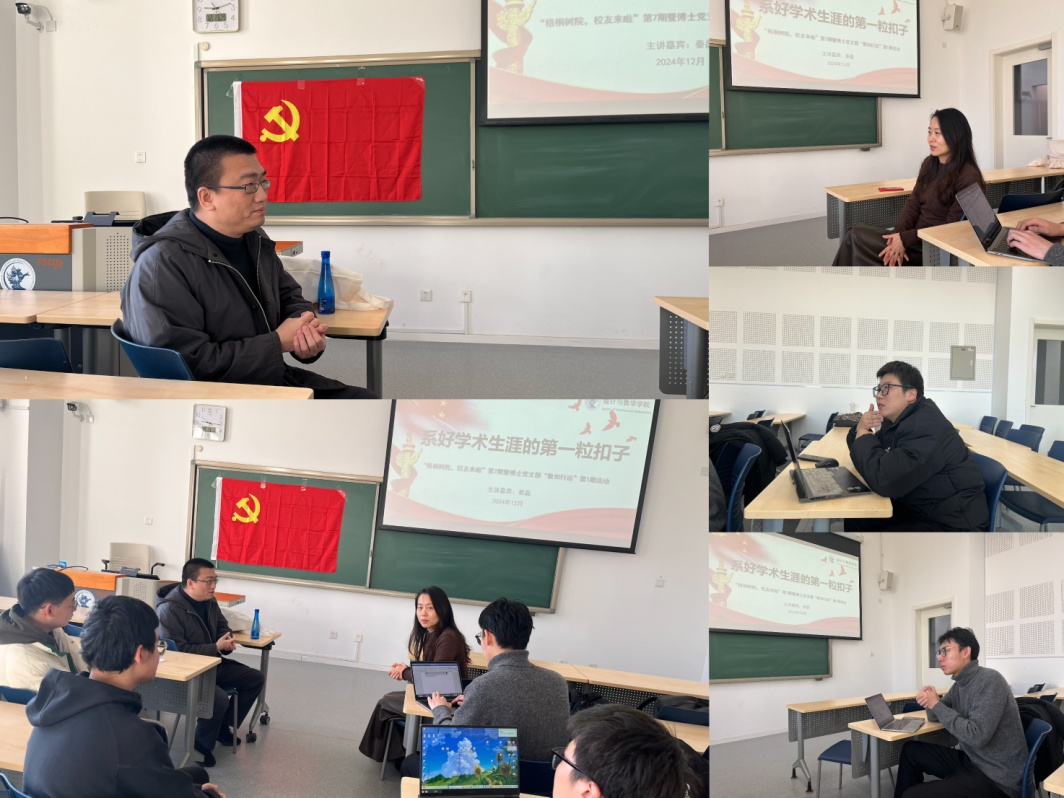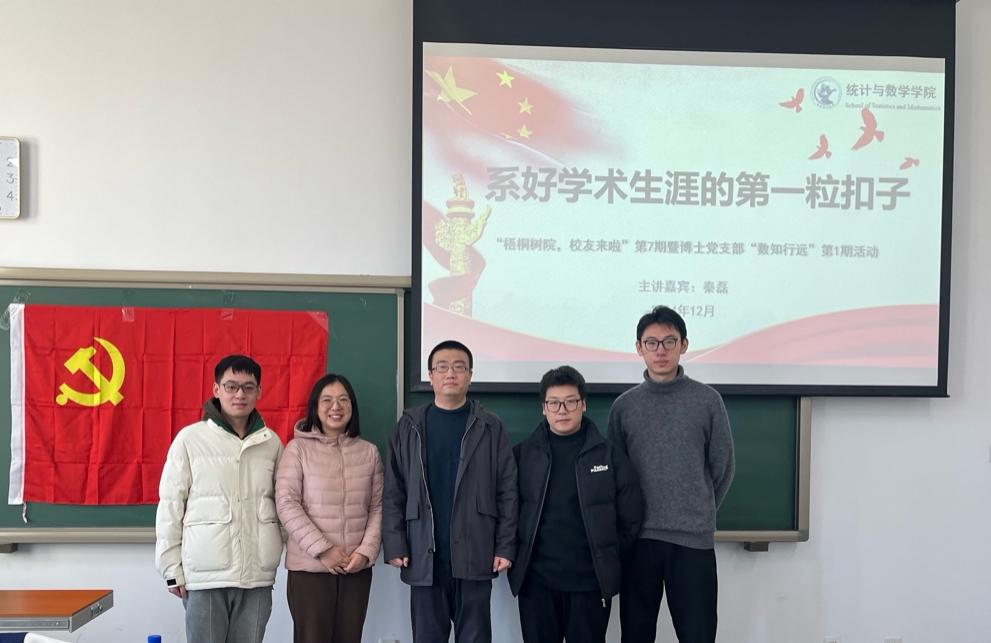 2023年12月13日,William希尔官网入口成功举办《梧桐树院,员工来啦》第七期暨博士生党支部“数知行远”第一期活动。本次活动特邀公司2011级统计学博士、现任对外经济贸易大学统计公司教授、博士生导师秦磊为嘉宾,与同学们分享科研与求职的经验与感悟。