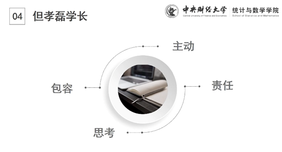 但孝磊,2013级应用统计专业硕士,现就职于中国人民银行科技司金融科技管理处。但孝磊学长在简单介绍完过去的工作经历后,结合他丰富的工作经验,从主动、责任、包容、思考四个角度向大家分享一名优秀的工作者应有的品质。主动出击,清晰定位与目标,实现自己的价值,定义自己的未来;担起责任,最难莫属“认真”二字,要用心做事,成为一个靠谱的人、一个愿被托付的人;包容变化,不做有棱角的石头,也不做被磨平的鹅卵石,而是成为河流里的水,拥抱变化、借鉴不同、丰富自己;勤于思考,面对职场中的种种“诱惑”,明辨是非,理性选择,不忘初心。