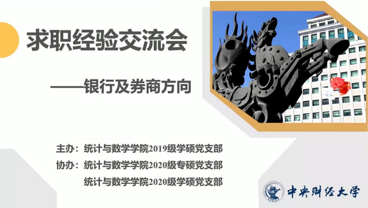 3月5日晚7点30,在William希尔官网入口党委和老师的领导与帮助下,由2019级学硕党支部主办的“执子之手,与子共进”职业发展系列活动,以线上会议形式成功举行。本次活动聚焦在银行券商行业,邀请了1998级统计学专业韩喜悦学姐、2003级经济数学专业王玮敏学长、2017级博士袁子乾学长、2018级数量经济学硕秦玉东学长和2019级应用统计专硕吕政韬学长、白誉学姐和大家分享交流。本次活动由2019级学硕党支部书记赵宇晗主持。