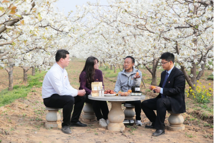 图三:2020年3月石岚同学(左二)组织云上梨花节活动