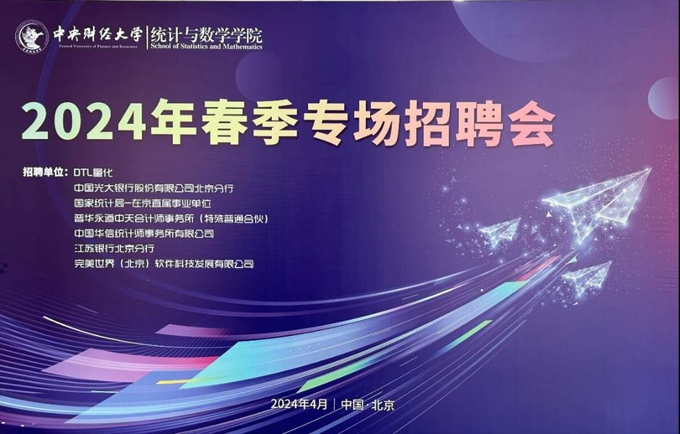 本次专场招聘会共特别邀请了7家单位,参会单位包括国家统计局在京直属事业单位、中国华信统计师事务所有限公司、中国光大银行股份有限公司北京分行、江苏银行北京分行、DTL量化、普华永道中天会计师事务所(特殊普通合伙)、完美世界(北京)软件科技发展有限公司。招聘岗位涵盖统计学类、数学类、金融类、经济类等相关专业,提供的岗位类型丰富多样。