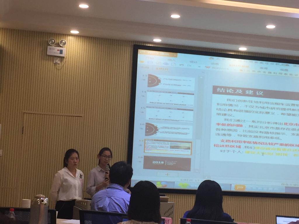 刘鑫组的案例从实际问题出发,研究北京市支路利用率的问题。该案例通过横向比较了纽约市和北京市的支路利用率情况,纵向找出了北京市支路利用率最低的几个地区,比如王府井、北京南站、军事博物馆、国家图书馆、五棵松等。此案例的研究结果具有很强的实际意义,对政府进行道路规划有一定的参考作用。在展示过程中,刘鑫同学表现落落大方,讲解结构清晰,时间掌控恰当。在问答环节,评委老师们对这个案例表现出浓厚的兴趣,对该案例的进一步完善以及应用提出了宝贵的意见和建议。
