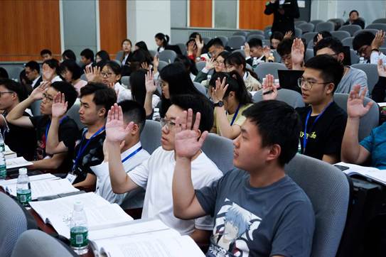 在新一届员工委员会主席团竞选环节中,共有七位候选人参与竞选,发表演说并进行答辩。七位同学风格各异,或娓娓道来,讲述自己与团学的故事;或立足当下,分享对员工工作的思考;或展望未来,描绘未来团学蓝图……他们在短短数分钟内展现了统数学子对统数团学的归属感、责任感,同时展现了当代青年积极进取、锐意创新的精神风貌。