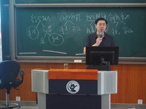 接下来,高兴波教授为营员们做了主题为《围绕四个核心素质,塑造快乐统数人生》的报告,他从员工培养的四个核心能力:综合能力、国际视野、科学精神、创新精神展开解读。首先强调健康的身体与积极乐观的心态对于个人综合能力提升的重要意义,其次鼓励营员们多多阅读外文读物,有助于开拓自己的国际视野,对将来的学术交流也大有裨益。接着生动地阐释了科学精神和创新精神的含义,即遵守规则、保持诚信、敢于质疑,最后提醒大家珍惜每一次机会,多多交流扩大视野,并预祝大家都能学有所成。近一个半小时的报告让大家意犹未尽,报告中传递的道理使营员们受益匪浅。
