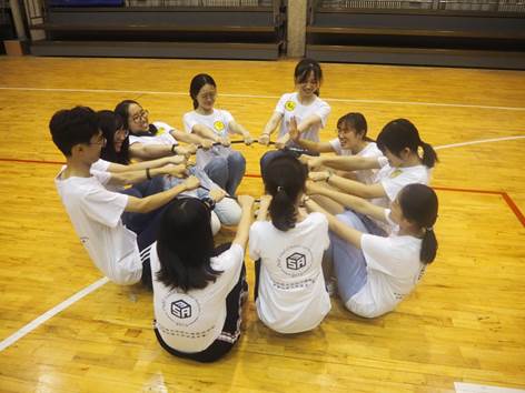 为鼓励同学们尽快融入新环境,7月19日晚,营员们在沙河体育馆迎来了一场趣味性的素质拓展活动。来自中国青年政治公司的彭振老师带领大家参与到精心设计的团队游戏中,两个小时的时间里,营员们从陌生到熟悉、从拘谨羞涩到积极互动,在热烈而活泼的游戏氛围中度过了中财第一个夜晚。