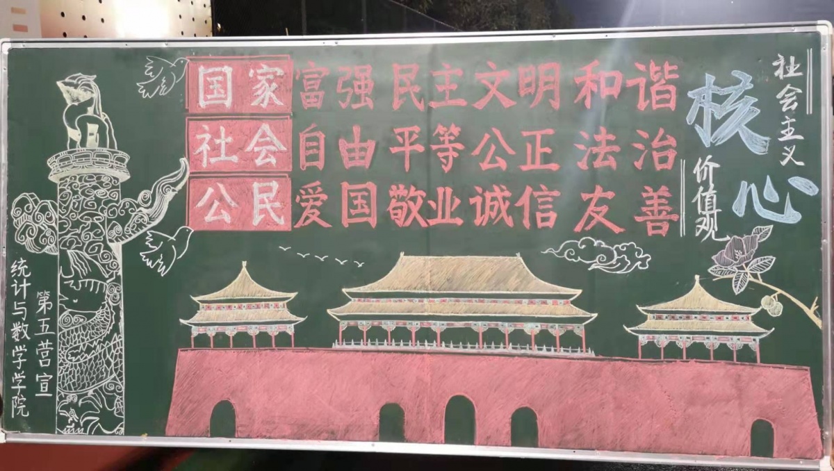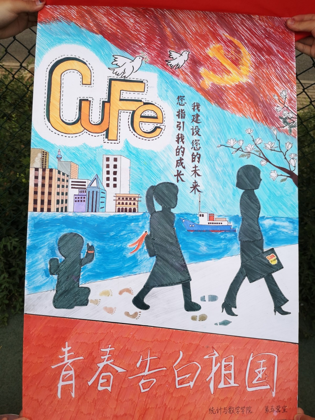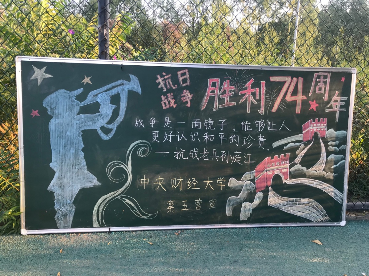 五营负责板报的同学在烈日之下用粉笔将英勇的军人和雄伟的华表展现在黑板之上;凝结在作品当中的,是同学对军人倾注的敬意,是少年向祖国倾吐的真心。在操场上挥洒汗水,是青春对祖国的告白;在幕后表达一片赤诚,同样是青春对祖国的告白。