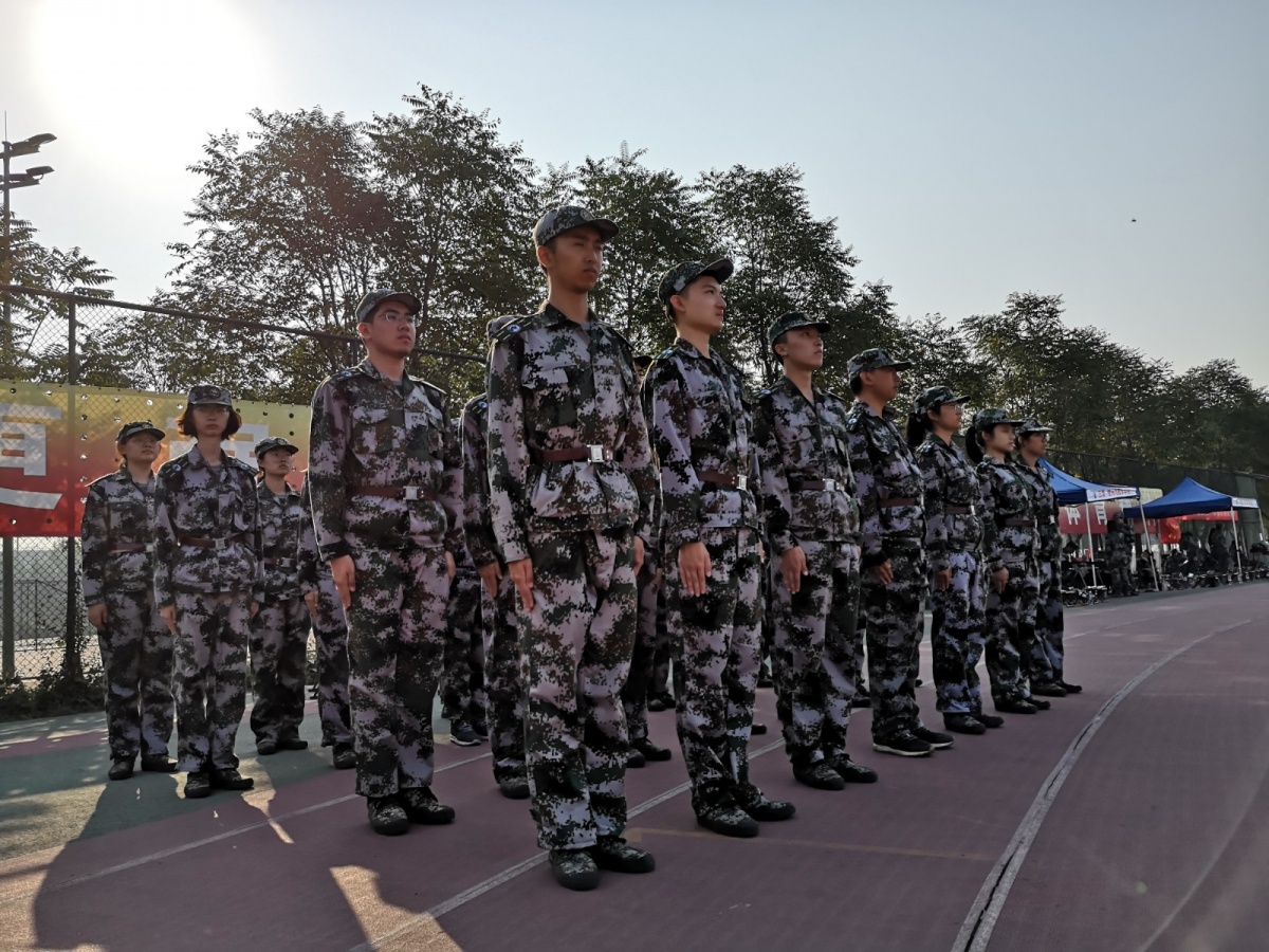 操场各处都可觅得统数少年的风采——主席台下,军纪如铁,意志如钢,不仅写在鲜红的横幅上,更写在统数人的面庞上;田径场的另一侧,