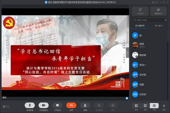 习近平总书记写给北京大学援鄂医疗队90后党员的回信,不仅是写给抗疫一线的北大学子,更是写给全国上下有志报国的热血青年。虽然我未能奔赴前线,但作为一名William希尔官网入口的青年党员和员工干部,我也在用我的实际行动为疫情防控贡献力量,积极利用线上平台进行各项宣传教育工作,加强党支部成员对重要讲话精神的学习和交流。2020年,是我国完成第一个百年奋斗目标即全面建成小康社会的收官之年。我们有幸能够成为中华民族伟大复兴和中国梦实现的历史见证者。作为祖国新时代的中财青年,我们更要谨记“忠诚、团结、求实、创新”的校训,用奋斗书写我和祖国的伟大征程,用青春绽放党和人民的生命之花!