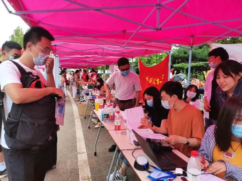 早7时许,研究生新生陆续前来报到,作为志愿者的研究生学长学姐们有序开展信息审核、材料收发、注册报到、分发钥匙及校园卡等各项工作,志愿者们现场帮助有需要的新生们搬运行李、指引路线、答疑解惑,迎新流程顺畅高效地进行着。学长学姐们热情周到的服务很快消除了新生们初来乍到的陌生感,“情味儿”浓厚的迎新安排给新生们带来了温暖亲切的中财初印象。