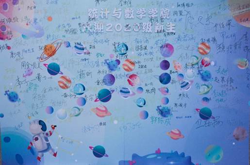 早上七点,第一位新生李佳翼到达了公司迎新站点。在志愿者的帮助下,她轻松快捷地完成了各项报到手续,并用甜美的微笑在镜头前留下了自己与中财的第一张合影。随后接踵而至的统数新生们,满怀憧憬和喜悦,报到注册、领取材料、在签名墙上签名、拍摄专属照片,一切都按照最初的预想,高效而有序地运转着。