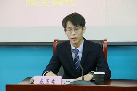 在颁奖环节,32位获得第一届“北京基金小镇优秀学子奖学金”的同学依次上台领奖,捐赠方和公司、公司领导为获奖员工颁发获奖证书。2018级数量经济学硕士研究生秦玉东代表全体获奖员工发言,他向资助方表示诚挚的谢意,并呼吁获奖员工以此次基金小镇优秀学子奖学金的颁发为契机,审视自己、珍惜当下、展望未来,思想信念做到端正坚为先,学习科研做到勤奋学为先,服务社会做到奉献能为先,继续在学业和实践中历练成才。