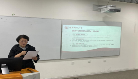 此外,李全敏带领大家原文学习了教师职业行为十项准则的具体内容,以此要求大家作为一名教师应“以德为本、身正为范。”新时代的十项准则不仅对教师日常行为提出了具体要求、也为教师的成长指引了前进的方向。