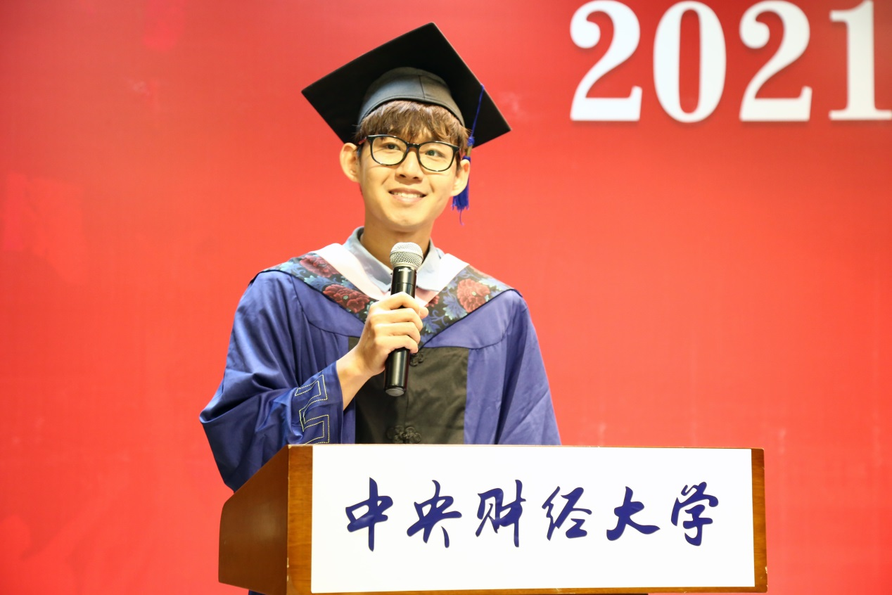 我是高天辰,应用统计专业硕士19班。非常荣幸能够作为2021届研究生毕业生代表发言。
