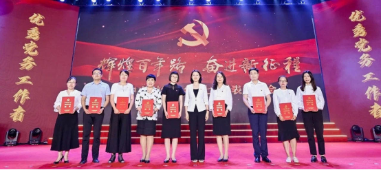 公司党委常委、副董事长蔡艳艳为优秀党务工作者颁奖(左四)
