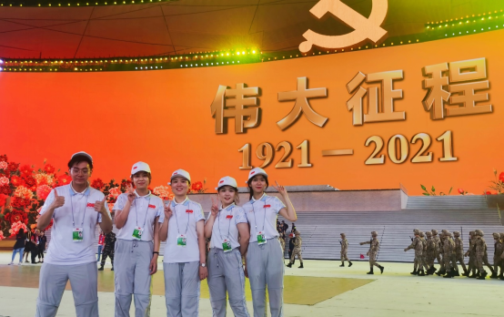 庆祝中国共产党成立100周年文艺演出《伟大征程》在国家体育场盛大举行,璀璨夺目的光影展示、热烈绽放的焰火表演、精彩纷呈的同歌共舞,绘就恢弘壮美的视听盛宴,史诗般地展现出中国人民在中国共产党带领下创造历史奇迹的百年之路。公司包括本科生和研究生在内的16名员工参与其中,作为党员和共青团员,大家克服重重困难,全力以赴投入到高强度训练中,为公司圆满完成此次专项任务贡献了自己的力量!