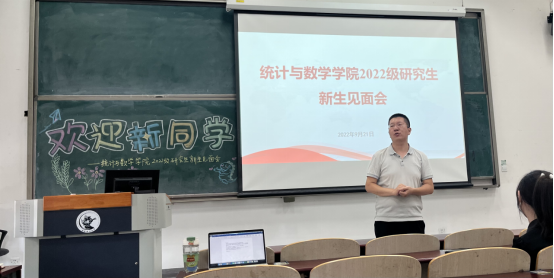 公司党委书记李全敏老师向同学们介绍了公司的基本情况,并重点强调了公司健全的人才培养体系和在就业方面的优势,帮助大家更快融入统数公司这个大家庭。同时鼓励大家注意健康,积极锻炼身体,并处理好师生、室友和同学关系,并祝愿大家能够在中财大度过愉快的研究生生活。