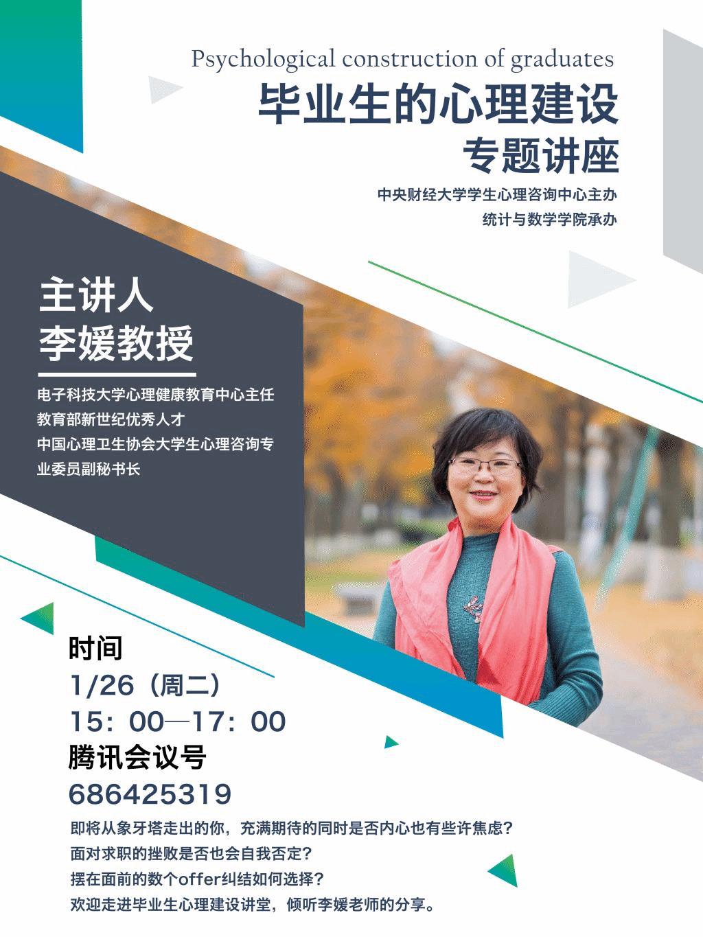 欢迎走进毕业生心理建设讲堂,倾听李媛老师的分享。