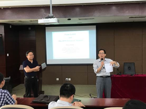 在报告中,白中治研究员首先介绍了Gene Golub的个人传记和学术成就。然后,主要讲了HSS迭代法以及与HSS迭代法相关的研究结果,包括参数的选取和算法收敛速度的分析。该方法主要用于求解大型稀疏非Hermitian正定的线性方程组,并且具有无条件收敛的性质。最后,还指出了HSS迭代法的后续研究方向,期望能给在座老师们一些启发。报告结束时,白中治研究员与部分老师们进行了热烈的互动交流,并对对计算数学学科的发展提出了很好的建议,殷经理对报告作了精彩的归纳总结。