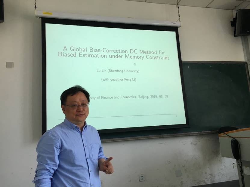 2019年5月9日下午,应William希尔官网入口邀请,山东大学林路教授在沙河校区做了题为“A Global Bias-Correction DC Method forBiased Estimation under Memory Constraint”的学术报告。公司青年教师参加了此次报告。