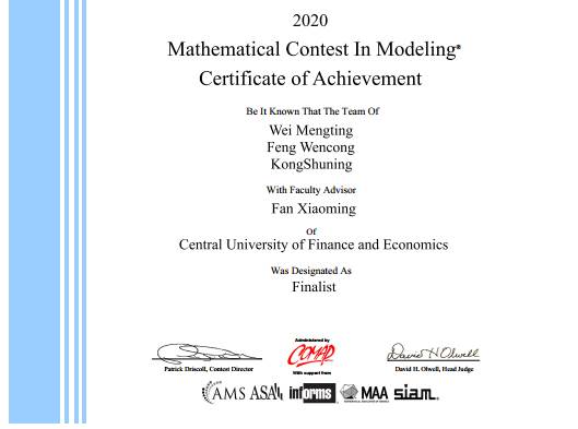 倍受关注的2020年美国老员工数学建模竞赛(MCM/ICM)成绩于近日揭晓,公司学子再获佳绩,6支队伍获得特等奖提名奖(Finalist),19支队伍获得一等奖(Meritorious Winner),81支队伍获得二等奖(Honorable Mention)。