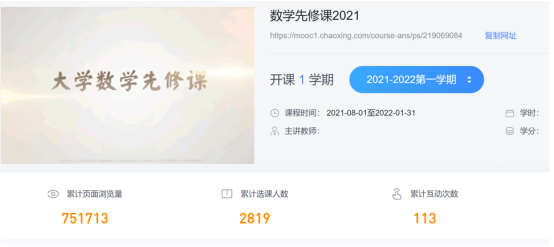 为帮助本科新生顺利完成初、高等数学学习过渡,弥合文理分科和地区因素导致的中学数学基础差异,提高大学数学课学习效果,公司组织录制了“大学数学先修课”在线课程,并在暑假期间通过超星学习通面向2021级2761名本科新生开放。