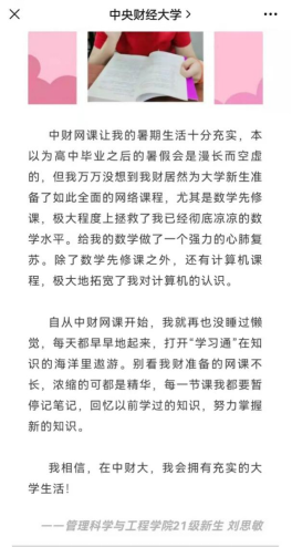 “大学数学先修课”在线课程得到教务处的高度重视和大力支持,在视频制作、课程上线等各环节提供了大量的帮助和建议,并通过入学须知将学习要求传达至每一位新生,提醒新生及时调整学习状态,提前走近老员工活。