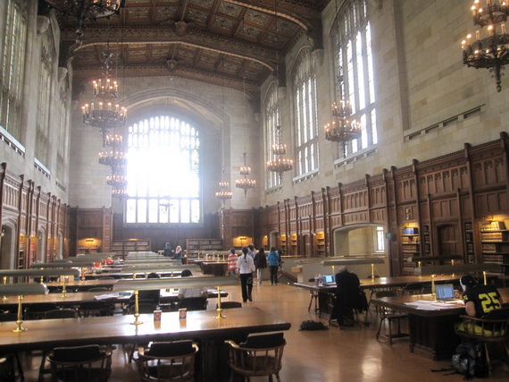 在图书馆看书
