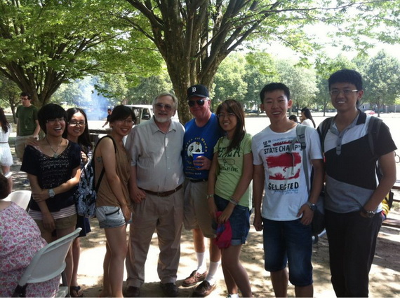 员工在ICPSR组织的野餐会上与教授合影