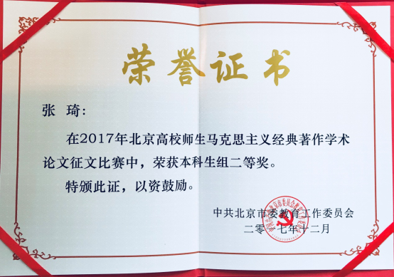 公司本科生在“2017年度北京高校师生马克思主义经典著作学术论文征文比赛”中荣获二等奖