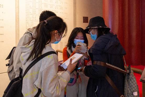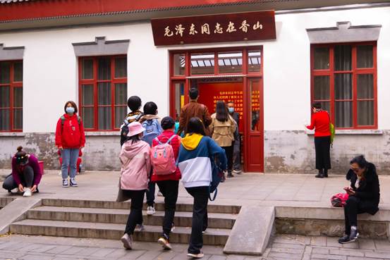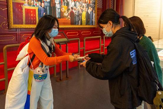 作为第一个任务点的活动地点的香山革命纪念馆,是设置基本陈列专门集中展示香山革命历史的重要场所。刚到纪念馆的入口,同学们就发现了第一个任务点,并完成了用指定姿势与毛主席像合影的任务。随后,得到了关键线索的同学们以惊人的速度根据攻略图片找到了NPC,同时领取了开启新任务的卡片。接下来的两个任务仍然是合影任务。小组成员们在纪念馆中认真排查、仔细寻找,迅速完成了任务2和任务3。