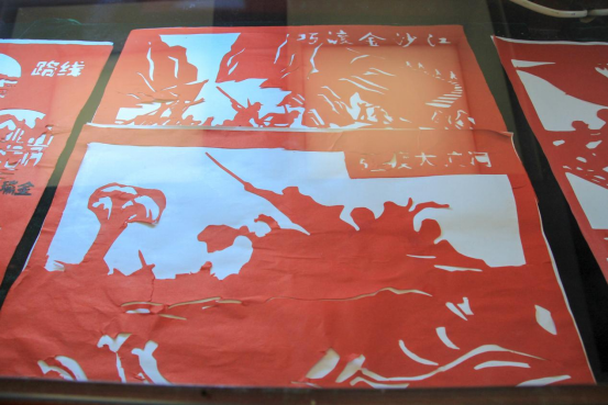 鲁国丰:我负责的部分是飞夺泸定桥刻纸,我印象最深的就是刻制过程中看到泸定桥那两条光秃秃的铁索,几乎没有桥面,但红军战士还是顶着枪林弹雨夺下了泸定桥。