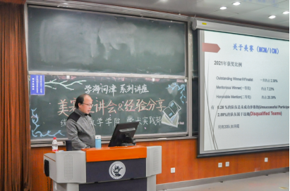 之后,他系统讲解了模型假设与符号说明,并就模型的构建展开详细的说明,模型评价可以模仿O奖的论文;参考文献要按照固定的引用格式并一一列出。他提倡我们论文排版用模板进行,注意图片插入和章节划分,LaTeX的语法实现要在平时多加练习,遇到问题要在网上积极查找。