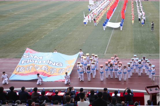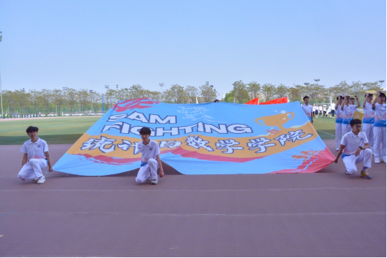 在文体部、员工会干事和辅导员设计与指导,以及同学们的通力配合下,我们的方阵队形变化初具雏形,象征着统数公司“SAM”的三个字母在主席台下不断的收起、展开。