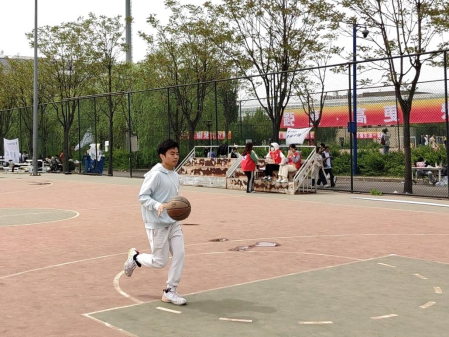 在篮球场上,同学们拍着篮球,绕过重重障碍,相互配合帮助,依次接力向前。比赛前的多次训练使得同学们在赛场上变得游刃有余,比赛中更加专注,最终超越自我,取得了自身的最好成绩。参与投篮接力的运动员们在指定投篮点依次站好,在裁判员一声令下,每个人胸有成竹地拿起篮球,瞄准、投出,篮球在空中划出一道美丽的抛物线,最终稳稳落入篮筐。篮球在指尖飞舞,激起在赛场张扬,活力在尽情释放!