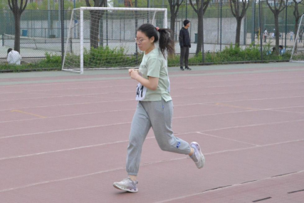 巾帼不让须眉,女子组的气氛也毫未落入下风。预备时的眼神与脚弓传达凝神压力,起跑后抬落的双足体现势在必得。并肩时飞舞的发辫是赛道上另一道独特的风景线。最终,王绎涵同学和黄紫琪同学均取得佳绩。