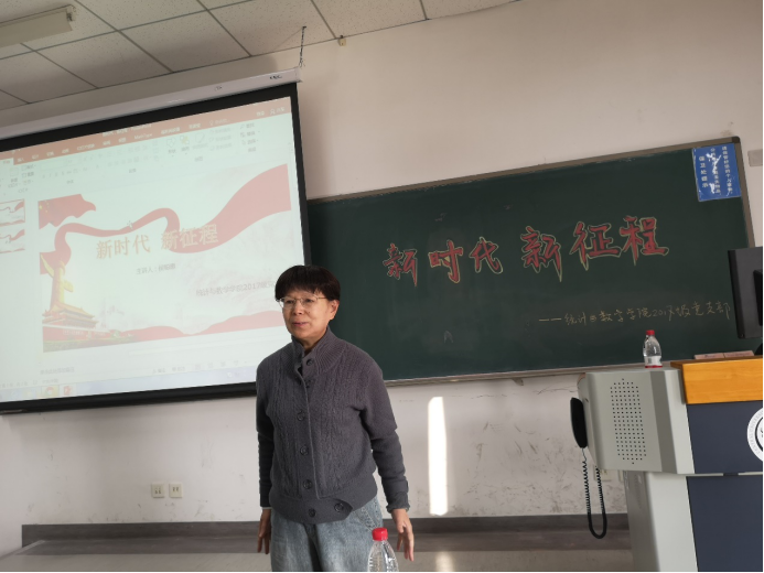 接着,侯老师带领大家再一次学习了党的十九大,指出十九大的三项重大成果分别是郑重宣示中国特色社会主义进入新时代、社会主要矛盾转化的判断以及正式确立为全党指导思想的习近平新时代中国特色社会主义思想。