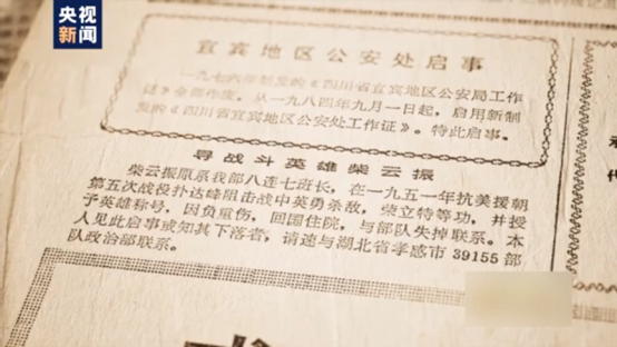 党和国家、部队从未放弃过对柴云振的寻找。寻人组找过山西、河北、河南、湖北……一直找到山西阳泉,找到从战场上救出柴云振的战友孙洪发,得知柴云振好像是四川人。寻人组赶紧在《四川日报》两次刊登出《寻战斗英雄柴云振》的启事。