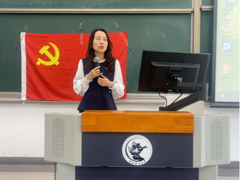 研究生宣讲团执行团长皮福玲进行题为:以史为鉴,以案促学——从“实”出发,在党纪学习教育中解锁“青春密码”的专题宣讲。她通过梳理党的领导人关于纪律建设的相关论述引出学习《条例》的重要性,引导党员从警示案例中深入学习和理解条例;提出“青春不能任性,纪律不能挑战”,学纪、知纪、明纪、守纪是每一位党员应有的自觉行动,呼吁同学们从自身做起。